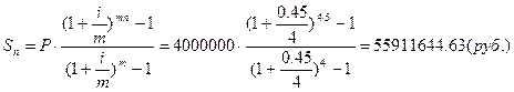 3.10. В течение Тлет лет на расчетный счет в конце каждого года поступает по S руб., на которые m раз в году начисляются проценты по сложной годовой ставке i%. Определить сумму на расчетном счете к концу указанного срока.