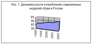 Обувной рынок России постоянно видоизменяется не только в связи с приходом на рынок новых российских и западных производителей, но и за счет изменения своего объема. На обувном рынке рассмотрим современные модели обуви ( см. рис.1)