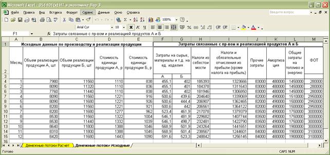 Провести анализ издержек предприятия, разложив суммарные издержки на постоянные и переменные, воспользовавшись методом наименьших квадратов. Составить уравнение (1), рассчитав его параметры для каждого из продуктов А и Б: