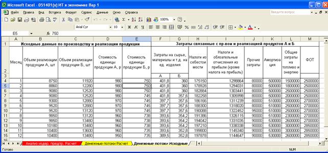 Провести анализ издержек предприятия, разложив суммарные издержки на постоянные и переменные, воспользовавшись методом наименьших квадратов. Составить уравнение (1), рассчитав его параметры для каждого из продуктов А и Б: