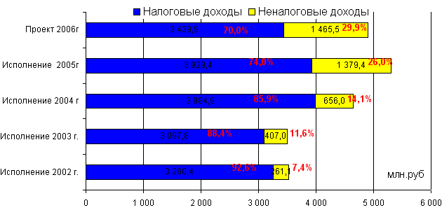 Это привело к снижению налоговой составляющей в доходной части бюджета за счет перераспределения федеральных и региональных налогов в пользу федерального и областного бюджетов. Муниципалитету приходится пополнять доходы своего бюджета за счет неналоговых платежей (арендной платы по сдаваемому в аренду муниципальному имуществу, арендной платы за предоставляемые в аренду земельные участки, приватизации муниципального имущества). Рост неналоговых доходов очевиден как в абсолютных суммах - с 2002 по 2006 год он составил 1,2 млрд.рублей, так и в удельном весе от собственных доходов - с 2002 по 2006 год удельный вес вырос на 22,5 процентных пункта.