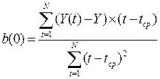 Для оценки нач. значений a(0) и b(0) применим линейную модель к первым 8 значения ряда |