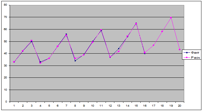 5) Отразить на графике фактические, расчетные и прогнозные данные. |