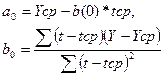 Во вспомогательной таблице 2 для t и Y(t) вычислим средние значения.