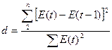 - независимости уровней ряда остатков по d-критерию (критические значения d1=1,10, d2=1,37) и по первому коэффициенту автокорреляции при критическом значении r1=0,32;