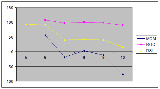 %R=100(H5 - Ct)/ (H5 - L5) или100-%K (вычисления проводятся при i=5,6,…,10),