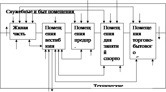 Функциональная организация помещений вестибюльной группы должна обеспечить рациональное взаимное расположение вертикальных коммуникаций и входов, с тем, чтобы движение основного людского потока было наиболее коротким. Функциональная связь между зонами и помещениями вестибюльной группы должна исключить пересечение людских потоков.