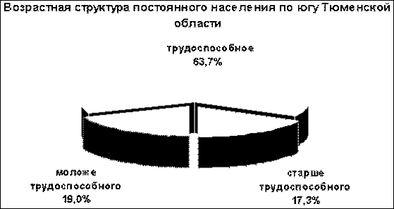Анализ данных переписи населения Тюменской области 2002 года показал, что возрастной состав на территории юга области более благоприятный для развития отраслей экономики региона по сравнению с общероссийским. Удельный вес лиц старше трудоспособного возраста составил – 17,3%. Население моложе трудоспособного (дети от 0 до 15 лет) занимает в общей численности 19%.