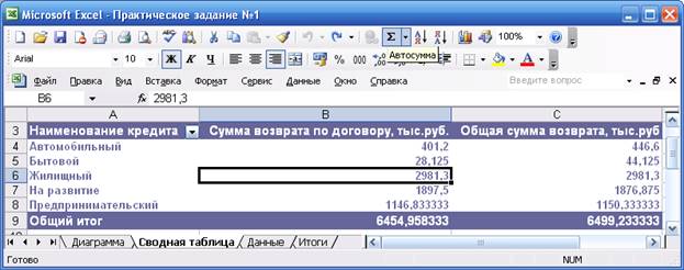 Сортируем данные по графе Наименование кредита (Рис. 3)
