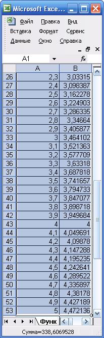 Размножаем введенную в ячейку B3 формулу для остальных ячеек данной графы. Получаем готовую вспомогательную таблицу для построения графика функции (Рис. 11)