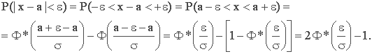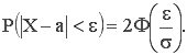 Вероятность заданного отклонения. Правило трех сигм. Найдем вероятность того, что случайная величина X, распределённая по нормальному закону, отклонится от математического ожидания М(Х)=а не более чем на величину e>0.