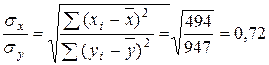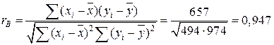 Вычислим выборочный коэффициент корреляции по формуле