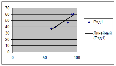 Представим графически уравнение регрессии Y на X и линию тренда
