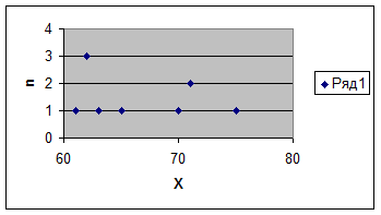 г) Наибольшую частоту имеет значение 4. Большие значения частот встречаются в середине выборки. Крайние значения имеют меньшие частоты.