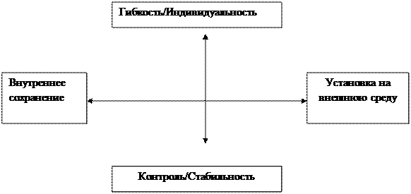 В соответствии с измерениями «гибкость/индивидуальность» - «стабильность/контроль» и «ориентация на внешнюю/внутреннюю среду» были выделены четыре типа организационных культур: