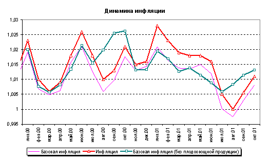 На одном из заседании правительства РФ летом текущего года президент РФ Путин был обеспокоен увеличением инфляции в июне 2000 г. до 2,5%. При этом было отмечено, что основная причина возрастания инфляции заключается в наращивании быстрыми темпами денежной базы, которую в свою очередь не успевает «перерабатывать» экономика России.