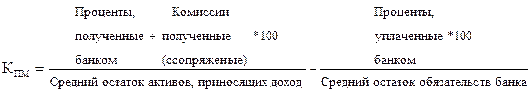 Основным источником прибыли банка является процентная маржа, представляющая собой разницу между процентным доходом и расходом коммерческого банка, между процентами полученными и уплаченными. Процентная маржа призвана покрывать налоги, убытки от спекулятивных операций и так называемое «бремя» – превышение беспроцентного дохода над беспроцентным расходом, а также банковские риски.