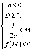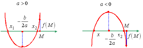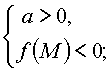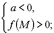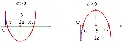 Утверждение 2. Для того чтобы один из корней квадратного трехчлена был меньше, чем число M, а другой больше, чем число M (т.е. точка M лежала бы между корнями), необходимо и достаточно выполнение условий: