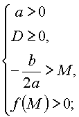 Утверждение 3. Для того чтобы оба корня квадратного трехчлена были больше, чем число M (т.е. лежали на числовой оси правее, чем точка M), необходимо и достаточно выполнение условий: