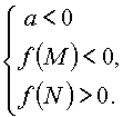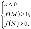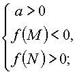 (при этом меньший корень лежит вне отрезка [M, N]).