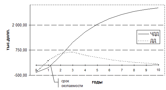 1. полученный результат расчета ВНД, превышающий коэффициент дисконтирования, используемый для расчета ЧДД проекта, более чем в четыре раза, говорит о высокой экономической эффективности данного инновационного проекта.