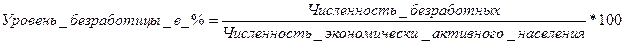 Коэффициент (уровень) безработицы определяется отношением общей численности безработных к численности экономически активного населения: