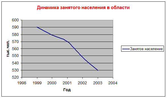 Таким образом, динамика занятого населения в период 1999 – 2003 гг. уменьшалась за год в среднем на 3%.