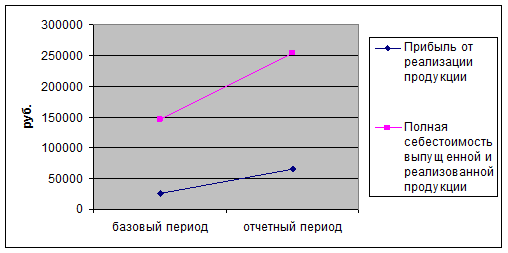 В отчетном году произошел рост доли прибыли структуре выручки от реализации на 10,32 %, при этом доля затрат в структуре выручки от реализации выросла на 21,31 %. В отчетном году наблюдается рост значения прибыли на 39062. руб., рост значения полной себестоимости на 103073. руб. и рост значения выручки от реализации в целом на 69176 руб.