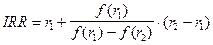 Практическое применение данного метода осложнено, если в распоряжении аналитика нет специализированного финансового калькулятора. В этом случае применяется метод последовательных итераций с использованием табулированных значений дисконтирующих множителей. Для этого с помощью таблиц выбираются два значения коэффициента дисконтирования r1<r2 таким образом, чтобы в интервале (r1,r2) функция NPV=f(r) меняла свое значение с "+" на "-" или с "-" на "+". Далее применяют формулу[3]: