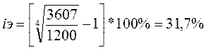Определим вначале доходность инвестиций без учета дисконтирования. Если получаемые денежные поступления не реинвестируются, то доходность инвестиций i3 определяется по формуле эффективной ставки сложных процентов: