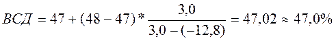 ВСД = 40,2 + (40,3 – 40,2)*(0,99997/(0,99997 - (-0,38826))) = 40,29%