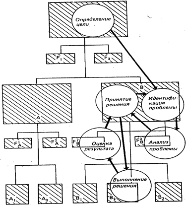 Это показывает, что всякое управление реализует вполне определенную последовательность трех основных этапов: определяет состояние управляемого объекта (идентификация проблемы); вырабатывает для данного состояния оптимальное воздействие (разработка и принятие решения); реализует его (реализация решения).