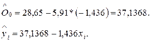 yn = 37,1368 – 1,436*11 = 21,3408.