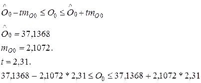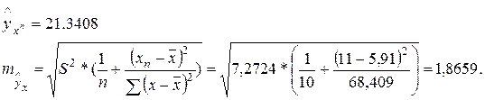 21,3408 – 2,57 * 1,8659 ≤ уn ≤ 21,3408 + 2,57 * 1,8659