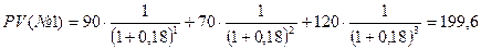 NPV (№1)= 199,6 – 220 = -20,4 млн.руб.