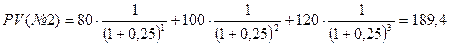 NPV (№2)= 189,4 – 235 = -45,6 млн.руб.