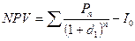 Средняя стоимость капитала в течение трех лет не менялась. Чистый приведенный эффект NPV представляет собой разность между накопленной суммой дисконтированных доходов PV и суммой первоначальной инвестиции I0: