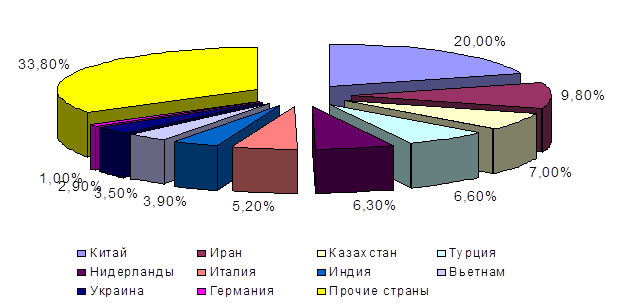 Экспортно-импортные операции участники внешнеэкономической деятельности осуществляют с 118 странами мира. Сформировавшийся круг стран-партнеров дальнего зарубежья, с которыми наша область поддерживает внешнеторговые связи, остается стабильным. Это такие страны как Китай, Турция, Италия, Нидерланды, Иран, Индия.