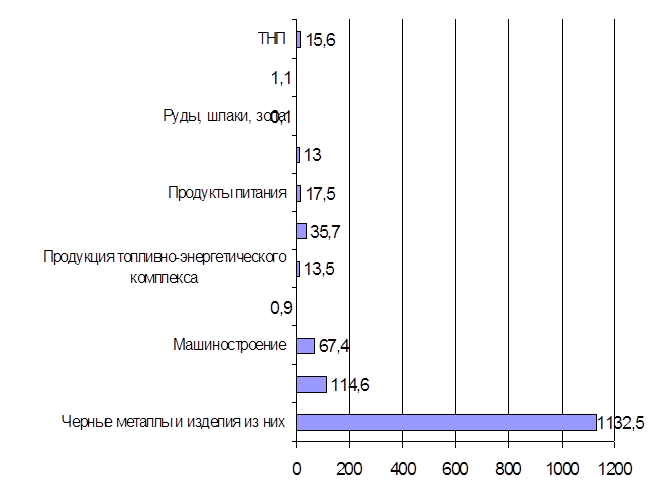 В общем объеме внешней торговли региона преобладающим является сырьевое направление – экспорт черных и цветных металлов, а также продукции машиностроения.