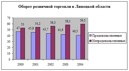 Товарная структура оборота розничной торговли в России, в % к итогу