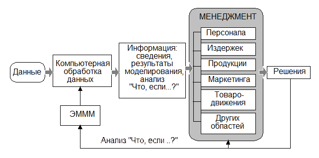 На схеме рис.2 показаны информационные потоки взаимодействия менеджера и компьютерной системы DSS, что обычно называется анализом "что, если .... ?"