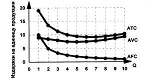 Рис. 2. Кривые средних издержек фирмы в краткосрочном периоде