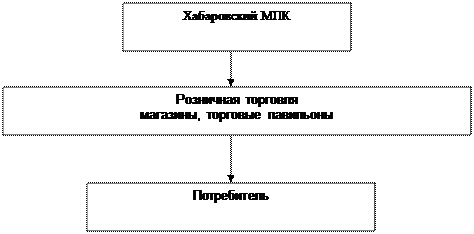 · по числу посредников: имея большое число посредников, и преследуя цель – расширение сбыта, приближения товара к потребителю Хабаровский МПК имеет вид сбыта интенсивный, схема сбыта представлена на рис.2.