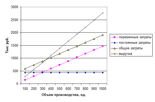 Определена цена обоих видов продукции на основе рентабельности продукции с использованием затратного метода формирования цены. Также определен безубыточный объем и зона финансовой безопасности для каждого вида продукции. Для одного из видов продукции построен график безубыточности.