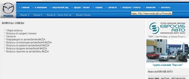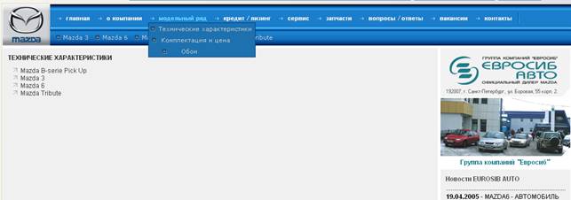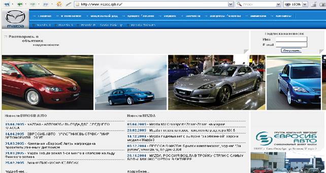 Рассмотрим русскоязычный сайт автомобильной фирмы «Мазда». Так как прежний адрес сайта были изменен на mazda.spb.ru, будем рассматривать его.