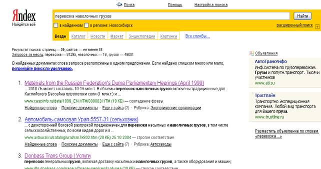 Найдем в поисковой систем Yandex.ru информацию, касающуюся вопроса: отечественные и зарубежные автомобили для перевозки наволочных грузов и оценим практическую значимость найденных нами сайтов.