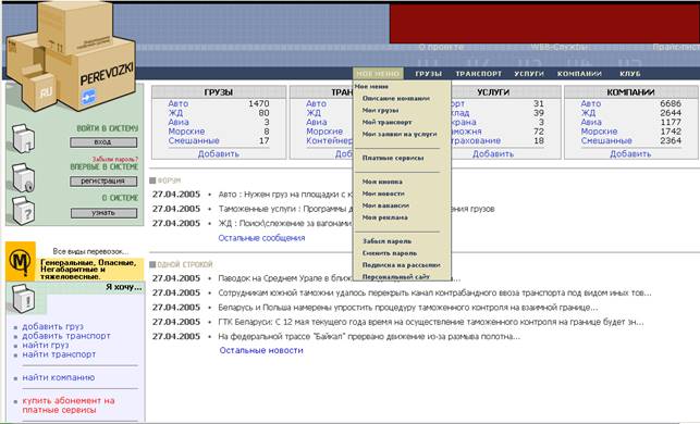 И рассмотрим последний сайт - http://www.perevozki.ru/