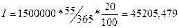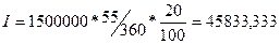 Для расчета точного числа дней ссуды воспользуемся табличным процессором Microsoft Excel – разность между датой закрытия и датой открытия, т.е. t=55 дней.