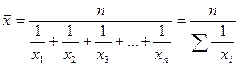 x – текущее значение (вариант) осредняемого признака;