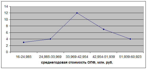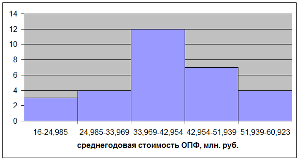 2. Рассчитаем пределы, в которых находится доля предприятий со среднегодовой стоимостью основных производственных фондов 43 млн. руб. и более.